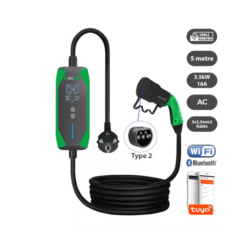 Truwatt ZT205 Taşınabilir Elektrikli Araç Şarj Cihazı 16A/3.5kW/220V (5 metre) Çanta Hediyeli